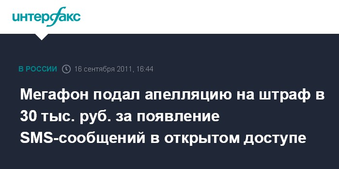 Мегафон подал апелляцию на штраф в 30 тыс. руб. за появление SMS-сообщений в открытом доступе