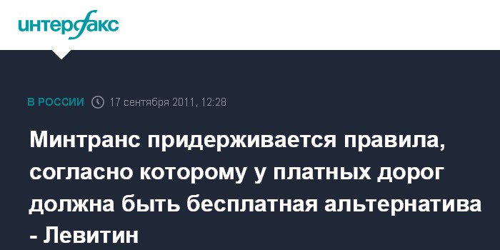 Минтранс придерживается правила, согласно которому у платных дорог должна быть бесплатная альтернатива - Левитин