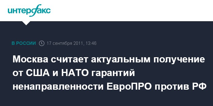 Москва считает актуальным получение от США и НАТО гарантий ненаправленности ЕвроПРО против РФ