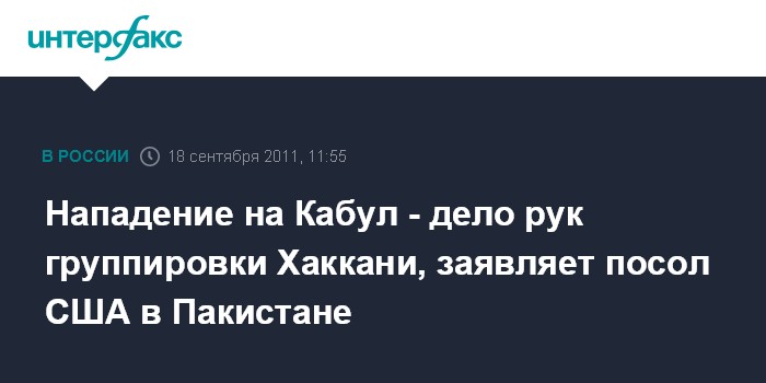 Нападение на Кабул - дело рук группировки Хаккани, заявляет посол США в Пакистане