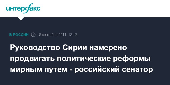 Руководство Сирии намерено продвигать политические реформы мирным путем - российский сенатор