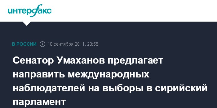 Сенатор Умаханов предлагает направить международных наблюдателей на выборы в сирийский парламент