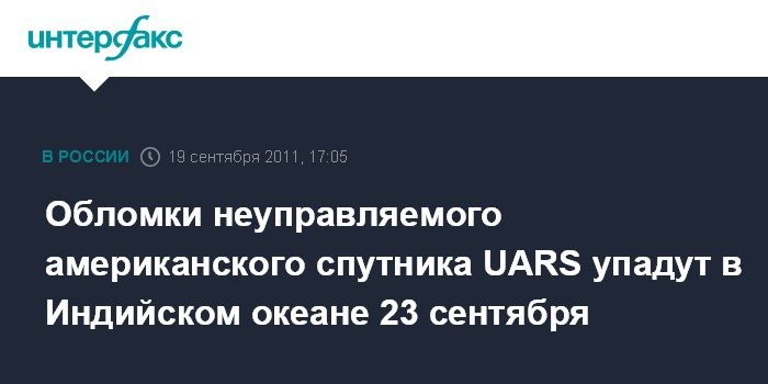 Обломки неуправляемого американского спутника UARS упадут в Индийском океане 23 сентября