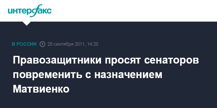 Правозащитники просят сенаторов повременить с назначением Матвиенко