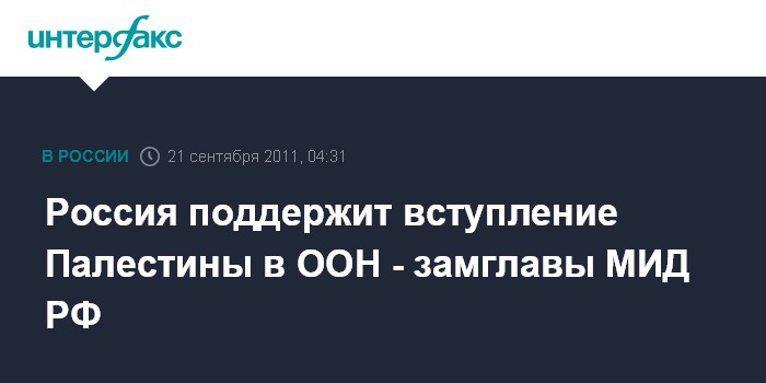 Нью-Йорк. 21 сентября. ИНТЕРФАКС - Россия поддержит полноправное членство Палестины в ООН.