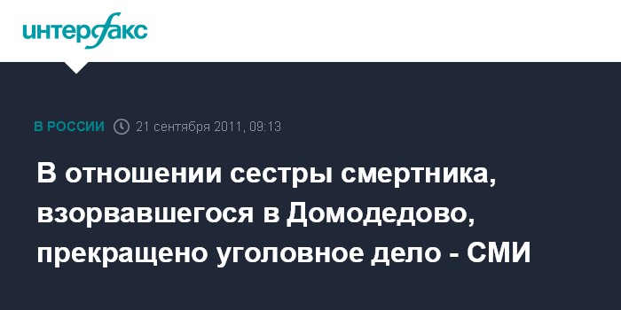 В отношении сестры смертника, взорвавшегося в Домодедово, прекращено уголовное дело - СМИ