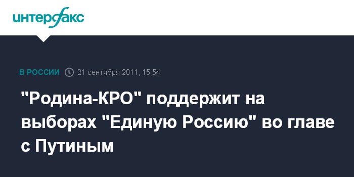 "Родина-КРО" поддержит на выборах "Единую Россию" во главе с Путиным