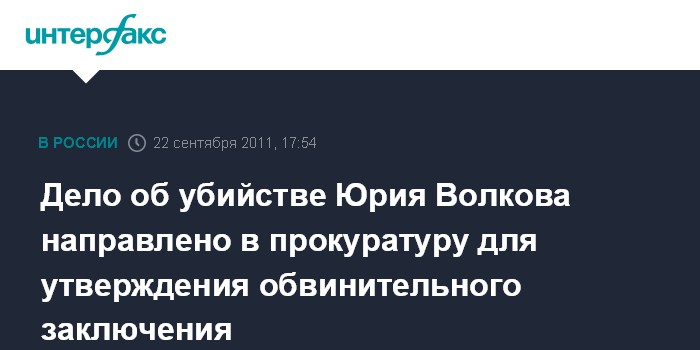 Дело об убийстве Юрия Волкова направлено в прокуратуру для утверждения обвинительного заключения