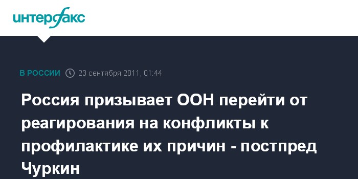 Россия призывает ООН перейти от реагирования на конфликты к профилактике их причин - постпред Чуркин
