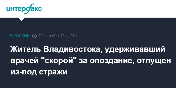 Житель Владивостока, удерживавший врачей "скорой" за опоздание, отпущен из-под стражи