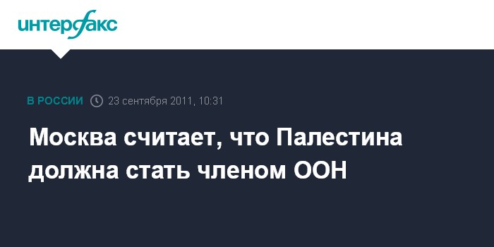 Нью-Йорк. 23 сентября. INTERFAX.RU - Россия подтверждает свое намерение поддержать Палестину в ее желании стать членом ООН.