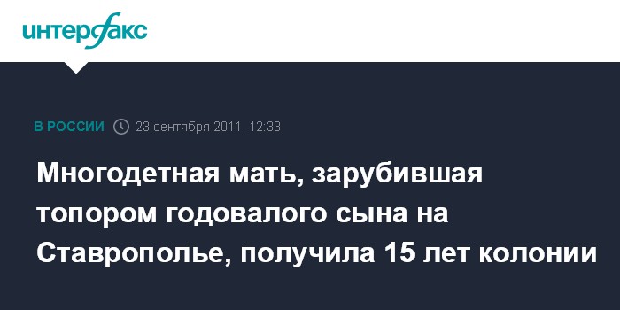 Многодетная мать, зарубившая топором годовалого сына на Ставрополье, получила 15 лет колонии