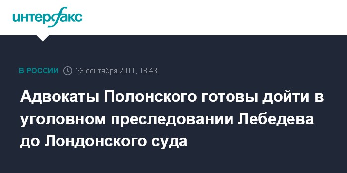 Адвокаты Полонского готовы дойти в уголовном преследовании Лебедева до Лондонского суда