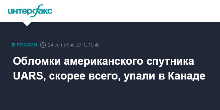 Оттава. 24 сентября. INTERFAX. RU - Жители городов в провинции Альберта на юго-западе Канады в ночь на субботу наблюдали в небе падение обломков американского научного спутника UARS.