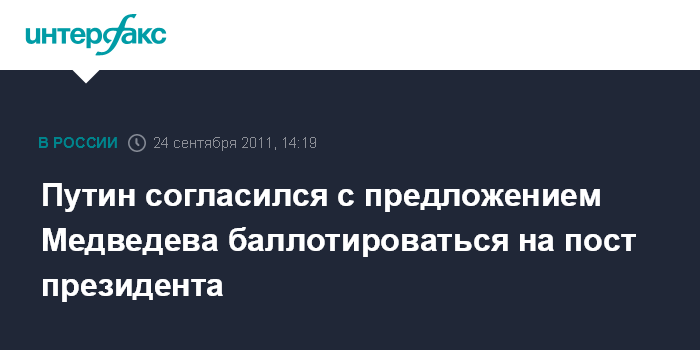 Путин согласился с предложением Медведева баллотироваться на пост президента