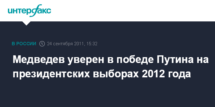 Медведев уверен в победе Путина на президентских выборах 2012 года