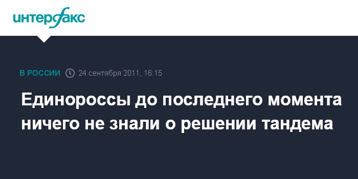 Москва. 24 сентября. INTERFAX.RU - Члены партии "Единая Россия", в том числе высшие функционеры этой партии, узнали о том, что президент страны Дмитрий Медведев возглавит избирательный список "единороссов", во второй день работы съезда, когда об этом с трибуны сказал лидер партии Владимир Путин. Это подтвердили, в частности, секретарь президиума Генсовета "Единой России" Сергей Неверов и руководитель центрального исполкома партии Андрей Воробьев, отвечая на вопросы журналистов по окончании работы съезда.