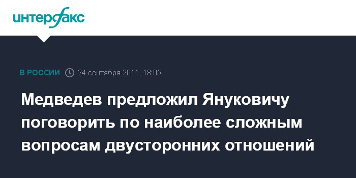 Медведев предложил Януковичу поговорить по наиболее сложным вопросам двусторонних отношений