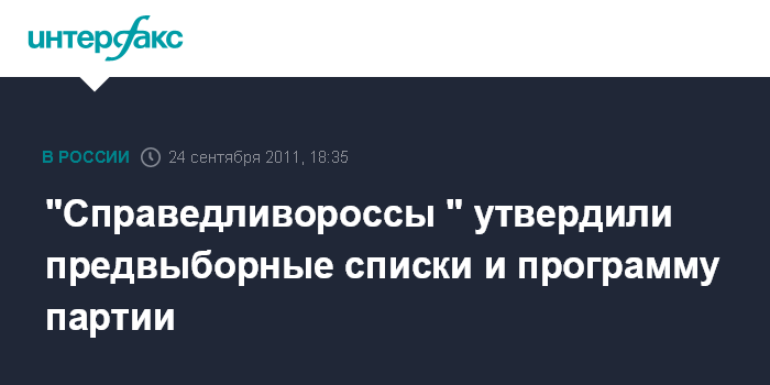 Москва. 24 сентября. INTERFAX.RU - Съезд "Справедливой России" в субботу единогласно утвердил программу партии на предвыборный период и федеральные списки.