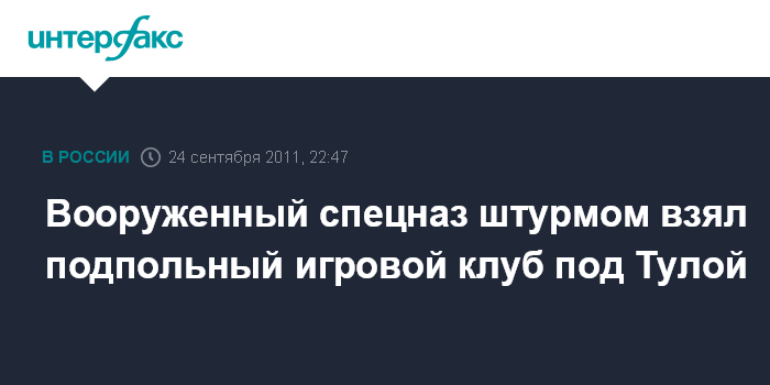 Тула. 24 сентября. ИНТЕРФАКС-ЦЕНТР - В городе Суворов Тульской области вооруженный спецназ вынужден был штурмом взять подпольный игровой клуб.