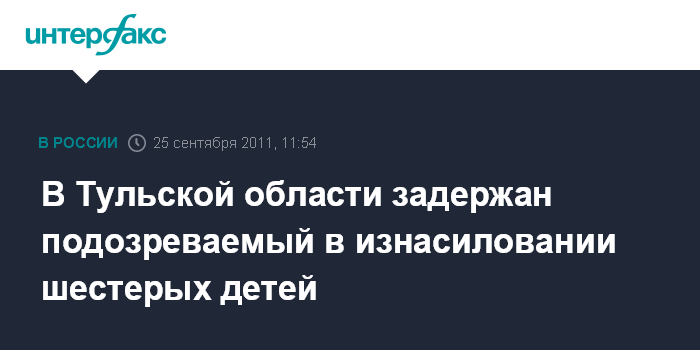 В Тульской области задержан подозреваемый в изнасиловании шестерых детей
