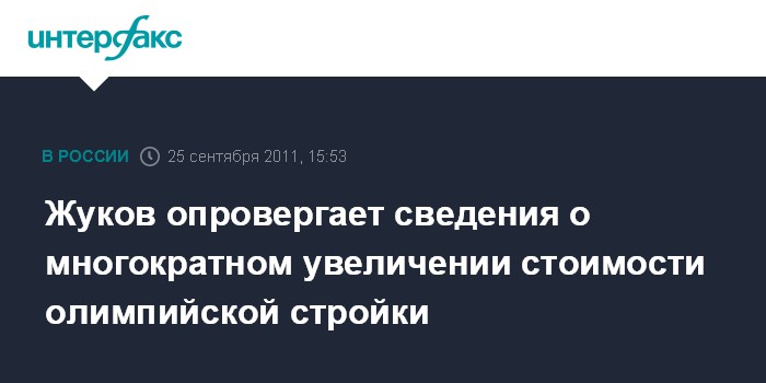 Москва. 25 сентября. INTERFAX.RU - Вице-премьер Александр Жуков называет заблуждением заявления о том, что смета олимпийского проекта в Сочи выросла в разы с момента начала строительства. "Стоимость стройки не выросла в разы, смета как была, так она и есть", - заявил А.Жуков на видеофоруме "Единой России" в воскресенье. По его словам, "это заблуждение", хотя подобного рода информации он читает изо дня в день.