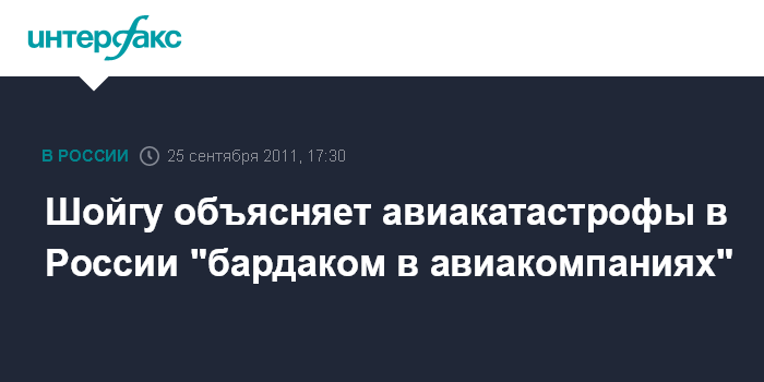 Шойгу объясняет авиакатастрофы в России "бардаком в авиакомпаниях"