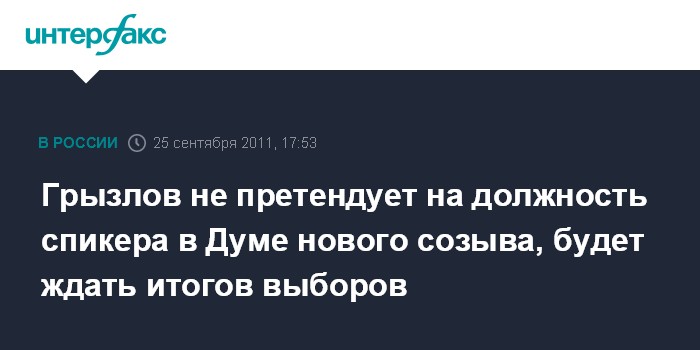 Москва. 25 сентября. INTERFAX.RU - Спикер Госдумы Борис Грызлов пока не готов ответить на вопрос, будет ли он претендовать на эту должность в новом составе нижней палаты парламента после выборов 4 декабря.