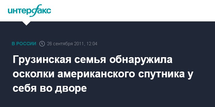 Тбилиси. 26 сентября. ИНТЕРФАКС - Семья Герсамия, проживающая в грузинском городе Кутаиси утверждает, что мелкие частицы американского спутника UARS могли упасть в минувшую пятницу на их двор.