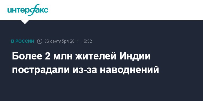 Лондон. 26 сентября. ИНТЕРФАКС - Не менее 2 млн человек пострадали в результате наводнений, вызванных затяжными дождями в Индии, сообщает в понедельник BBC.