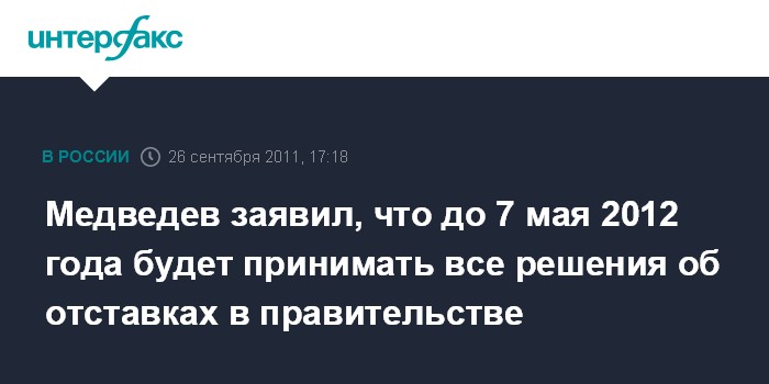 Медведев заявил, что до 7 мая 2012 года будет принимать все решения об отставках в правительстве
