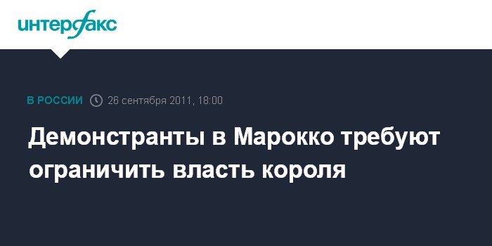Париж. 26 сентября. INTERFAX.RU - Несколько тысяч демонстрантов вышли понедельник на улицы крупных городов в Марокко с требованиями политических реформ, социальной справедливости и искоренения коррупции, сообщает межарабская газета "Al-rai al-arabiy". Антиправительственные выступления проходят во многих городах страны, в том числе, в столице Рабате и в Касабланке. Демонстранты, среди прочего, требуют расширения полномочий парламента и ограничение власти короля Мухаммеда VI. В знак протеста против практически неограниченной власти монарха, манифестанты призывают бойкотировать парламентские выборы, которые пройдут в ноябре текущего года.