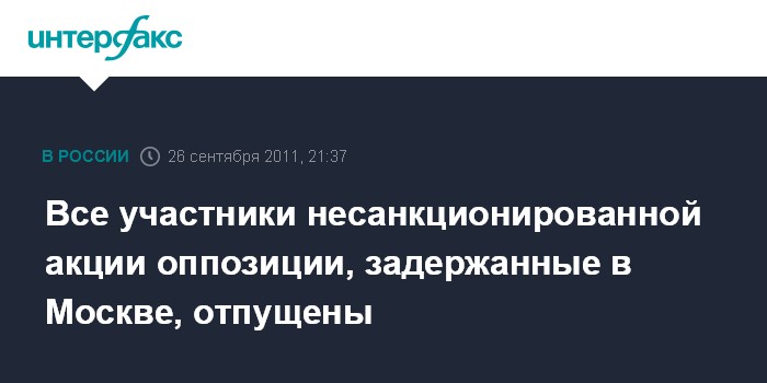 Москва. 26 сентября. INTERFAX.RU - Полиция отпустила всех участников несанкционированной акции за отмену декабрьских выборов, обязав часть из них явиться в суд, сообщил координатор "Левого фронта" Сергей Удальцов.