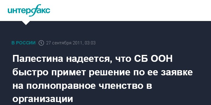 "Мы надеемся, что Совет Безопасности сможет быстро принять решение и даст позитивную рекомендацию, чтобы Палестина смогла стать членом ООН", - заявил журналистам наблюдатель от Палестинской национальной администрации при ООН Рияд Мансур.