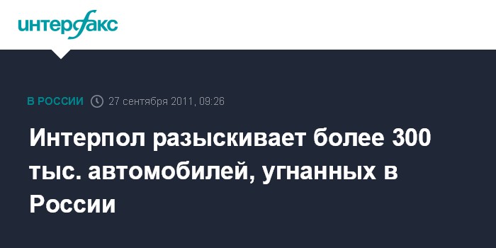 Москва. 27 сентября. INTERFAX.RU - Более 300 тысяч автомобилей россиян находятся в международном розыске по линии Интерпола, с начала года на территории иностранных государств найдены только несколько десятков.