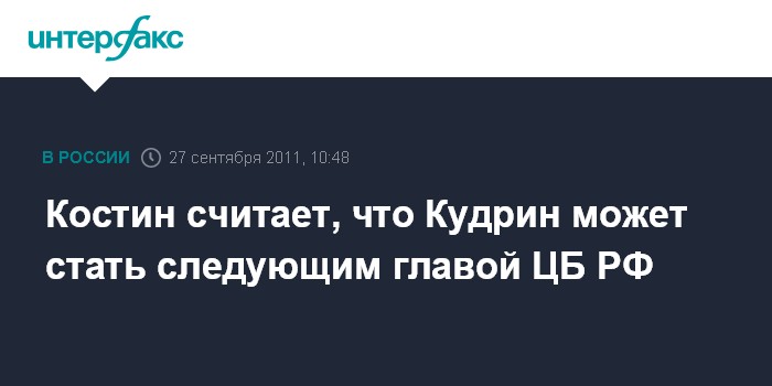 Москва. 27 сентября. INTERFAX.RU - Отправленный в отставку вице-премьер, министр финансов РФ Алексей Кудрин может стать следующим председателем Банка России, считает президент-председатель правления ВТБ Андрей Костин.