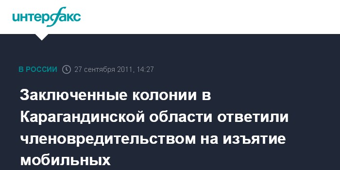 Караганда. 27 сентября. INTERFAX.RU - В исправительной колонии АК 159/11 в поселке Долинка Карагандинской области Казахстана группа заключенных совершила акт членовредительства, сообщили во вторник агентству "Интерфакс-Казахстан" в пресс-службе областного департамента комитета уголовно-исполнительной системы.