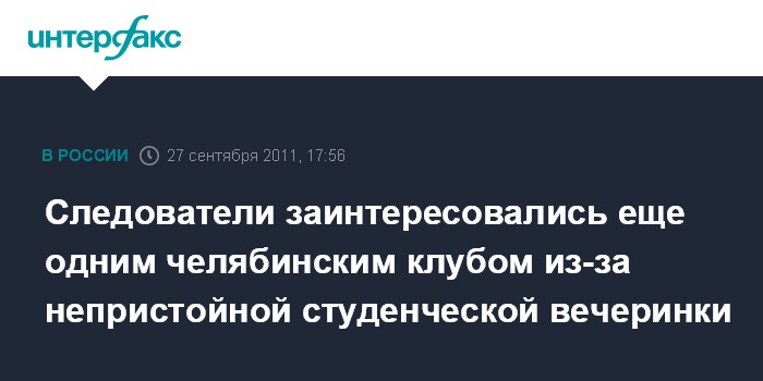 Челябинск. 27 сентября. INTERFAX.RU - Следственные органы Челябинска приступили к проверке клуба "Ди джей парк Инсайд" после студенческой вечеринки, вызывающие фотографии и видеозапись с которой попали в Интернет.