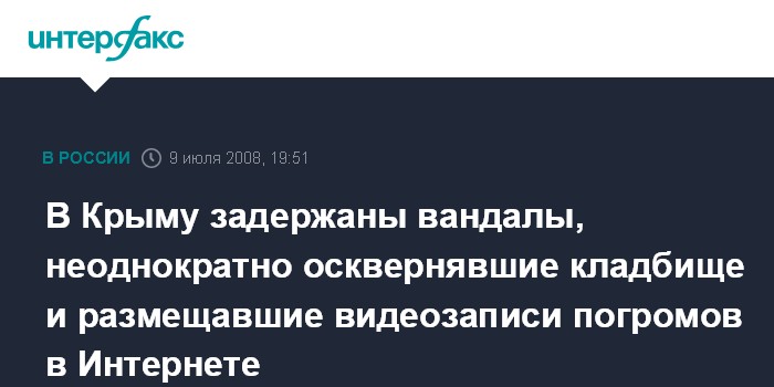 Симферополь. 9 июля. ИНТЕРФАКС-УКРАИНА - Крымские правоохранители задержали троих вандалов, которые с прошлого года 8 раз оскверняли кладбище в Симферопольском районе.