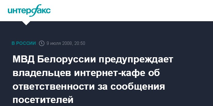 МВД Белоруссии предупреждает владельцев интернет-кафе об ответственности за сообщения посетителей