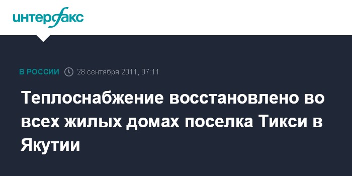 Якутск. 28 сентября. ИНТЕРФАКС-ДАЛЬНИЙ ВОСТОК - В якутском поселке Тикси теплоснабжение подано во все жилые дома, сообщили агентству "Интерфакс-Дальний Восток" в пресс-службе ГУП ЖКХ Якутии.