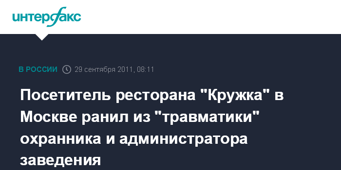 Посетитель ресторана "Кружка" в Москве ранил из "травматики" охранника и администратора заведения