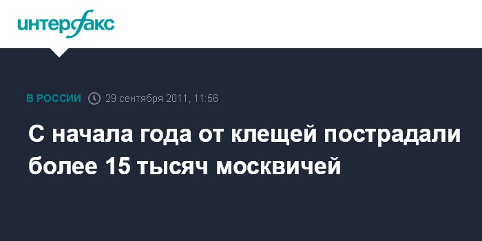 Москва. 29 сентября. INTERFAX.RU - В лечебно-профилактические учреждения Москвы с жалобами на присасывание клещей с начала 2011 года обратилось 15 тысяч 623 человека, сообщили "Интерфаксу" в столичном управлении Роспотребнадзора в четверг.