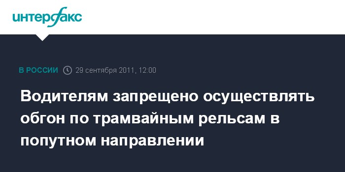 Москва. 29 сентября. INTERFAX.RU - Верховный суд РФ запретил обгон по трамвайным рельсам попутного направления.