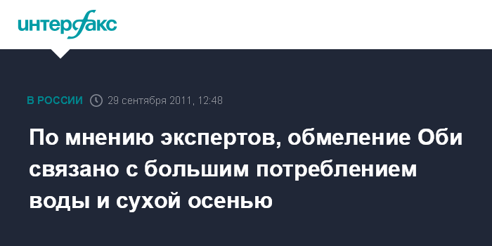 Барнаул. 29 сентября. ИНТЕРФАКС-СИБИРЬ - Стремительное обмеление одной из главных рек Сибири - Оби - в Алтайском крае носит сезонный характер, считает замдиректора по науке Института водных и экологических проблем (ИВЭП) СО РАН, доктор биологических наук, профессор Александр Пузанов.