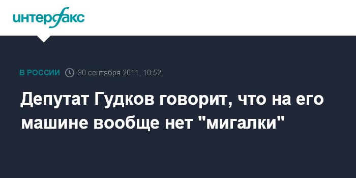 "Я действительно нарушил правила, и, торопясь на совещание, выехал на резервную полосу, но никаких встречных машин не было и, кстати, у меня нет и не было мигалки", - сказал Гудков "Интерфаксу".
