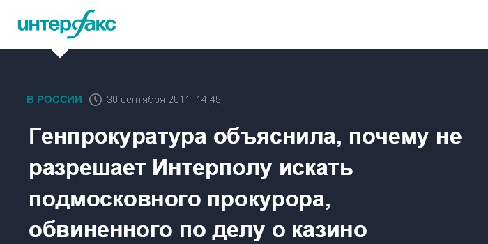 Генпрокуратура объяснила, почему не разрешает Интерполу искать подмосковного прокурора, обвиненного по делу о казино