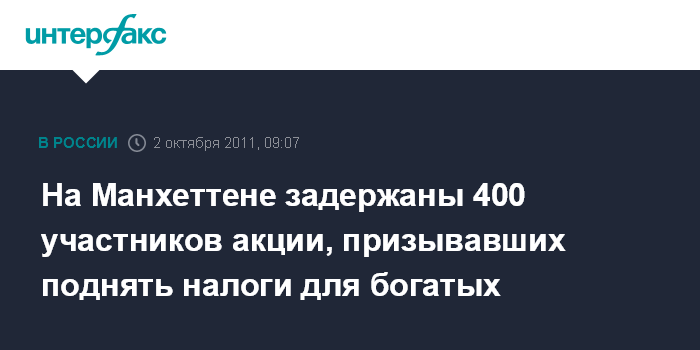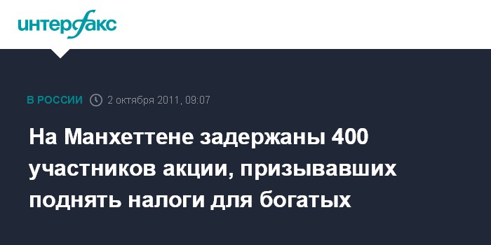 На Манхеттене задержаны 400 участников акции, призывавших поднять налоги для богатых