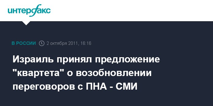 Израиль принял предложение "квартета" о возобновлении переговоров с ПНА - СМИ