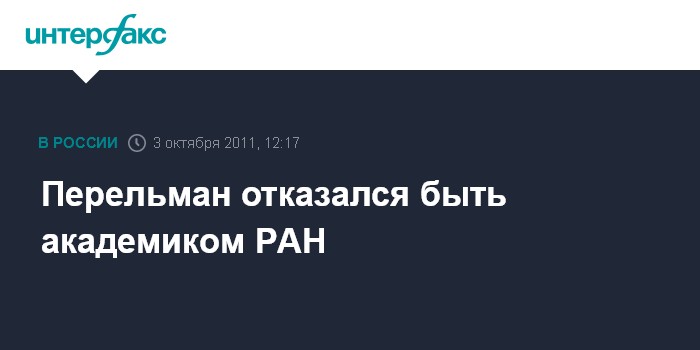 Санкт-Петербург. 3 октября. INTERFAX.RU - Выдающийся математик современности Григорий Перельман так и не ответил инициаторам его выдвижения в академики РАН.
